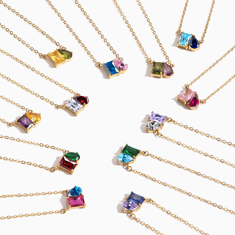 Each necklace features a round birthstone pendant, symbolizing one of the twelve birth months — a timeless expression of love, identity, and celebration.