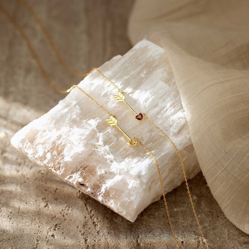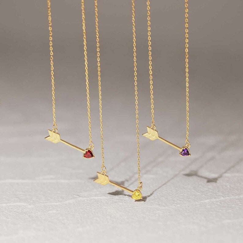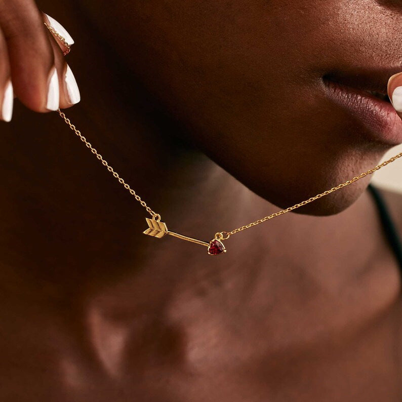 December Birthstone Heart and Arrow Pendant Necklace