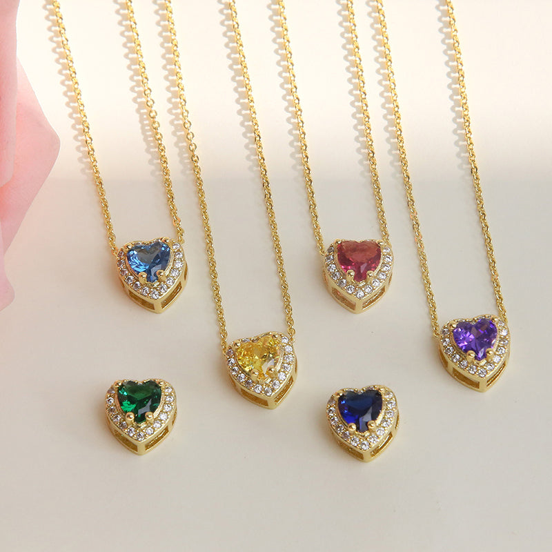 Wearmissshop December Birthstone Heart-Shaped Diamond Pendant Necklace