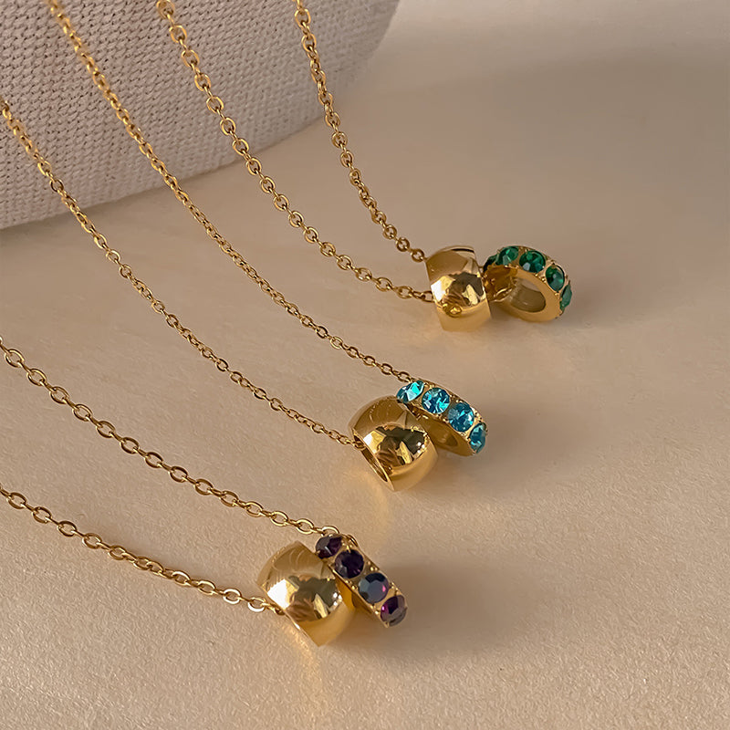 Wearmissshop December Birthstone Rhinestone Double Circle Necklace