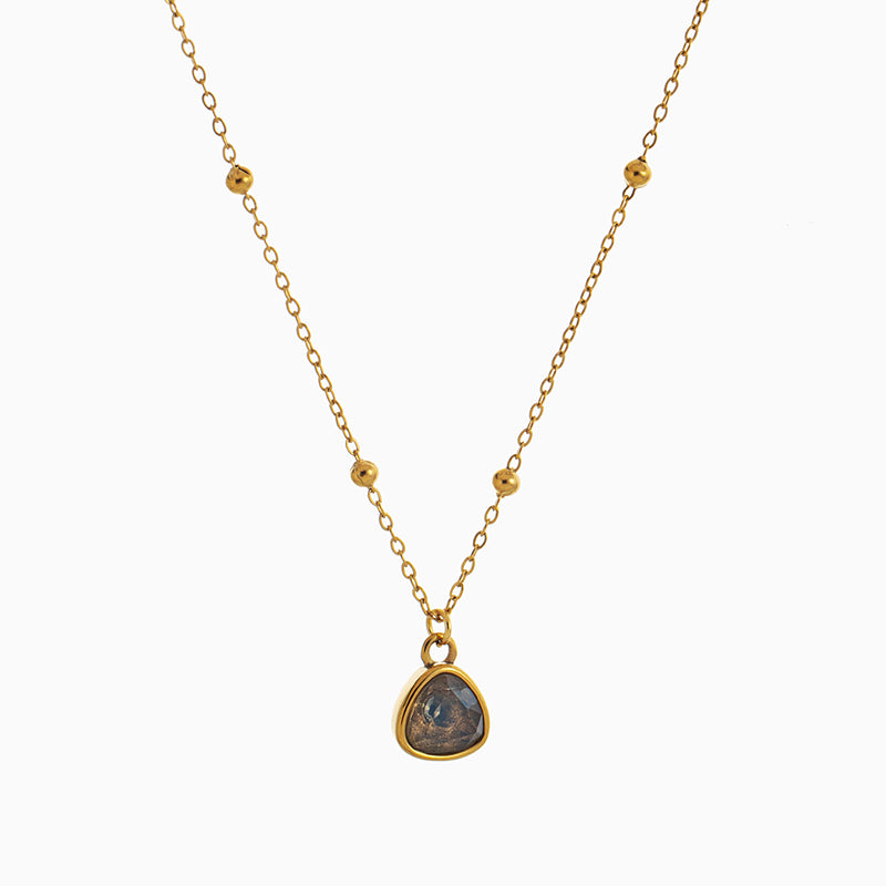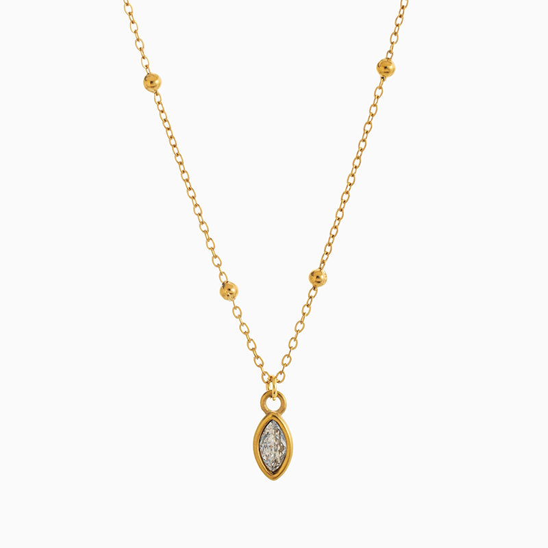 December Birthstone Shaped Zircon Pendant Round Bead Necklace