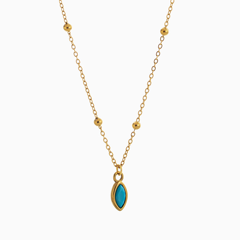 Wearmissshop December Birthstone Shaped Zircon Pendant Round Bead Necklace