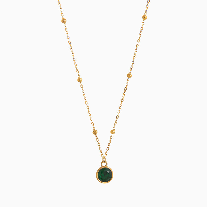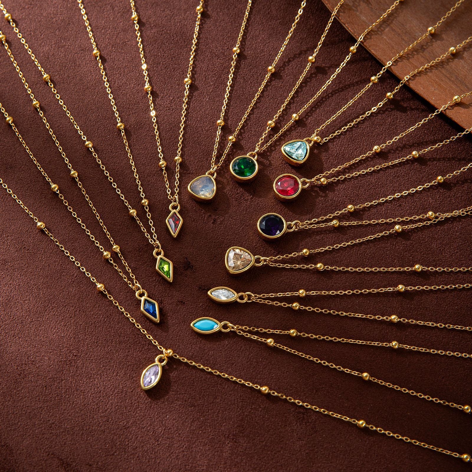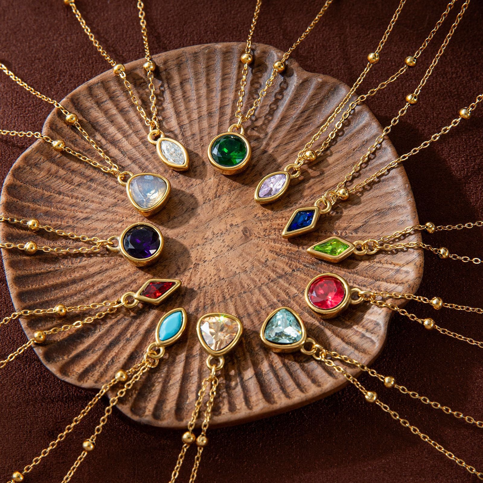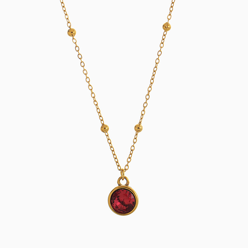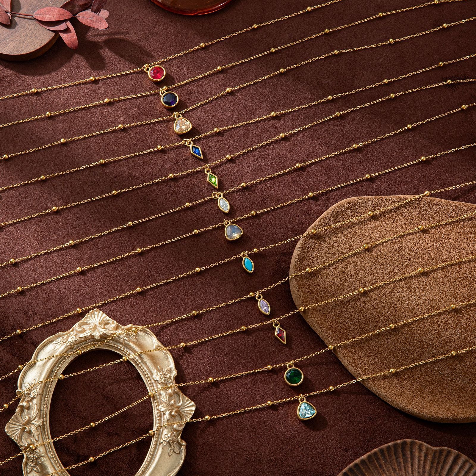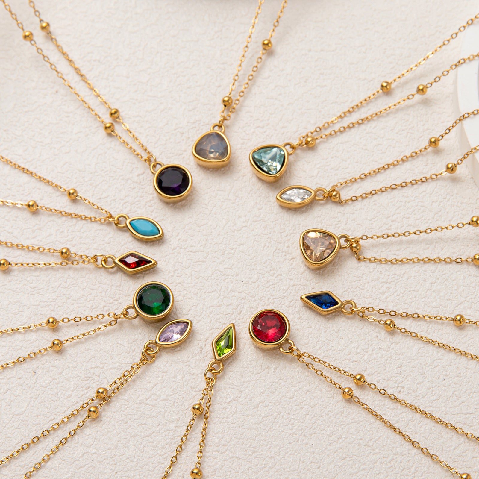 Each necklace features a round birthstone pendant, symbolizing one of the twelve birth months — a timeless expression of love, identity, and celebration.