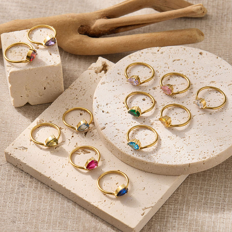 • Brighten up your look with a special accessory—choose wearmissshop birthstone ring series.