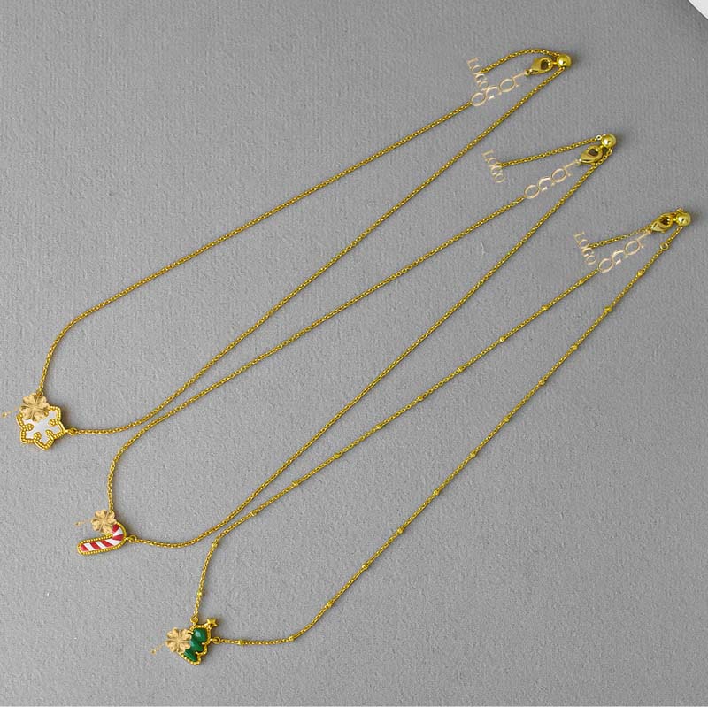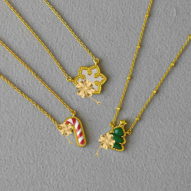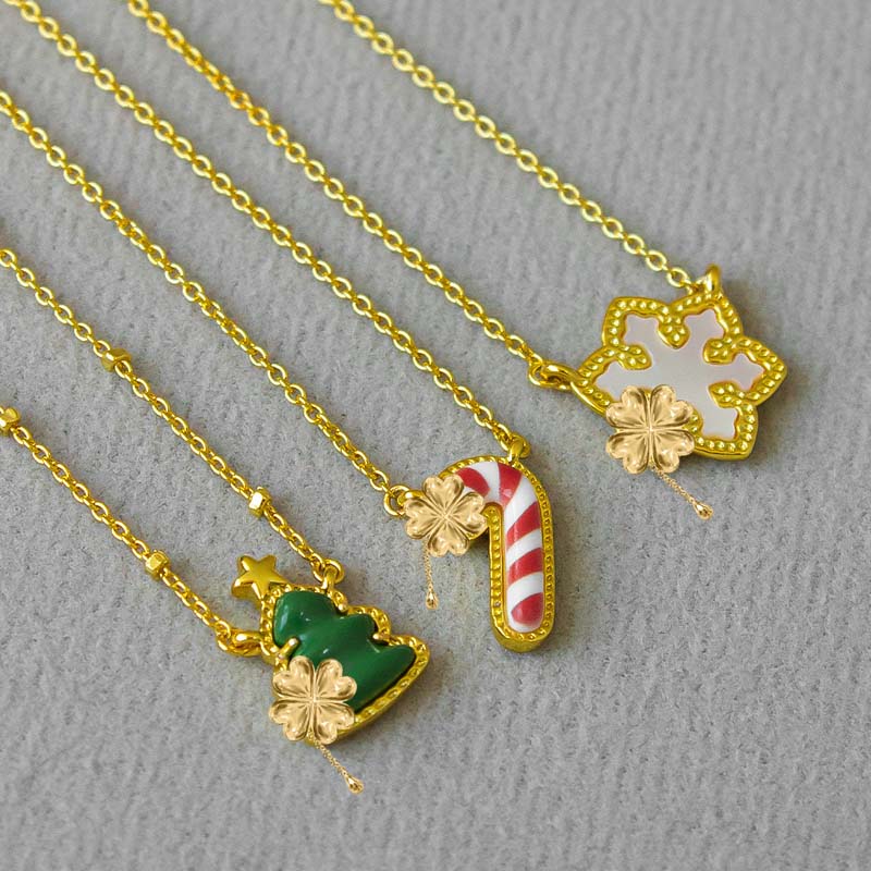 • Celebrate the holiday spirit with this playful necklace featuring a Christmas tree and candy cane design. Perfect for adding festive charm to any outfit or as a thoughtful gift this season. Shine bright with holiday cheer!