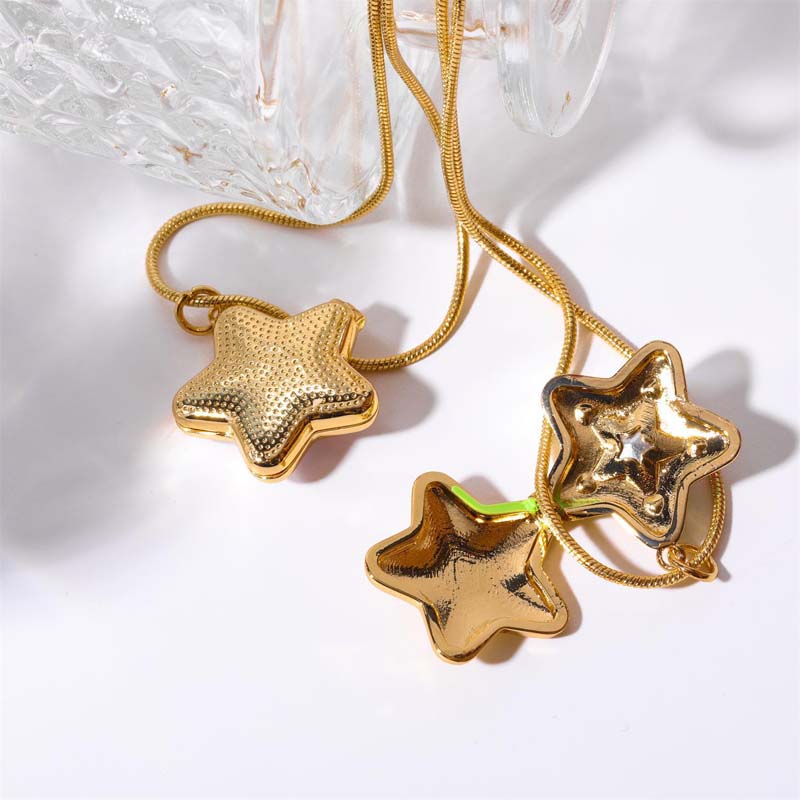 • Fashionable Dopamine Star Diamond Opening and Closing Photo Album Necklace — Shine bright with this dazzling star-shaped locket. Featuring sparkling diamonds and a hidden photo space, it’s a perfect blend of joy, style, and meaningful memories.