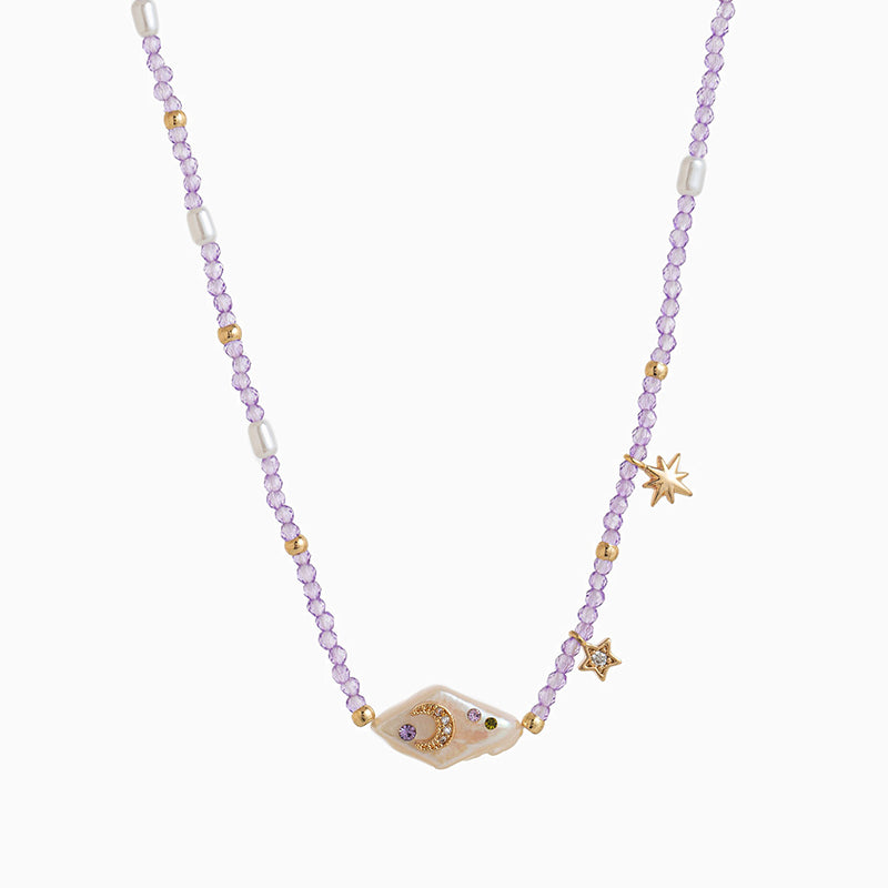 • Add a dreamy touch to your style with this Baroque Pearl Moon Zircon Purple Beaded Necklace.