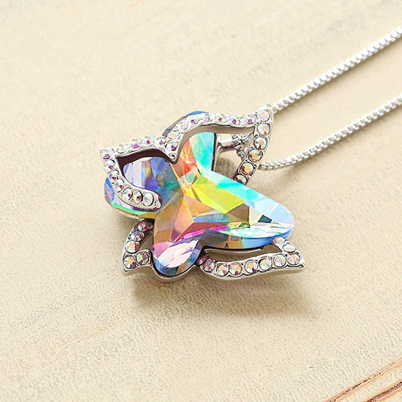 Wearmissshop Fashionable Diamond Crystal Butterfly Pendant Necklace