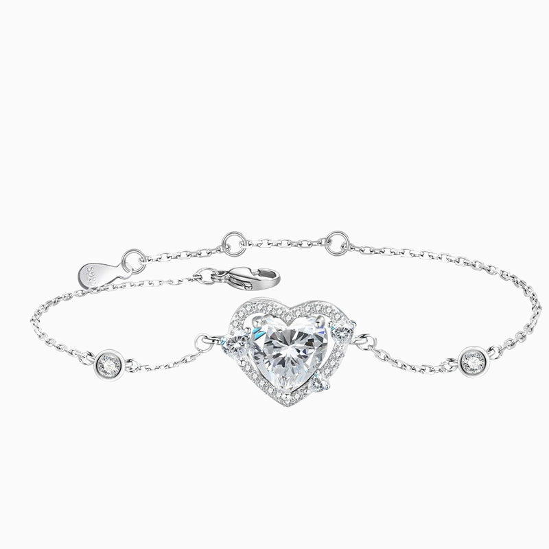 - Add a touch of elegance to your wrist with this heart-shaped hollow bracelet. Crafted from sterling silver and adorned with sparkling diamonds, its delicate design is both fashionable and timeless—perfect for everyday wear or a special gift for someone you love.