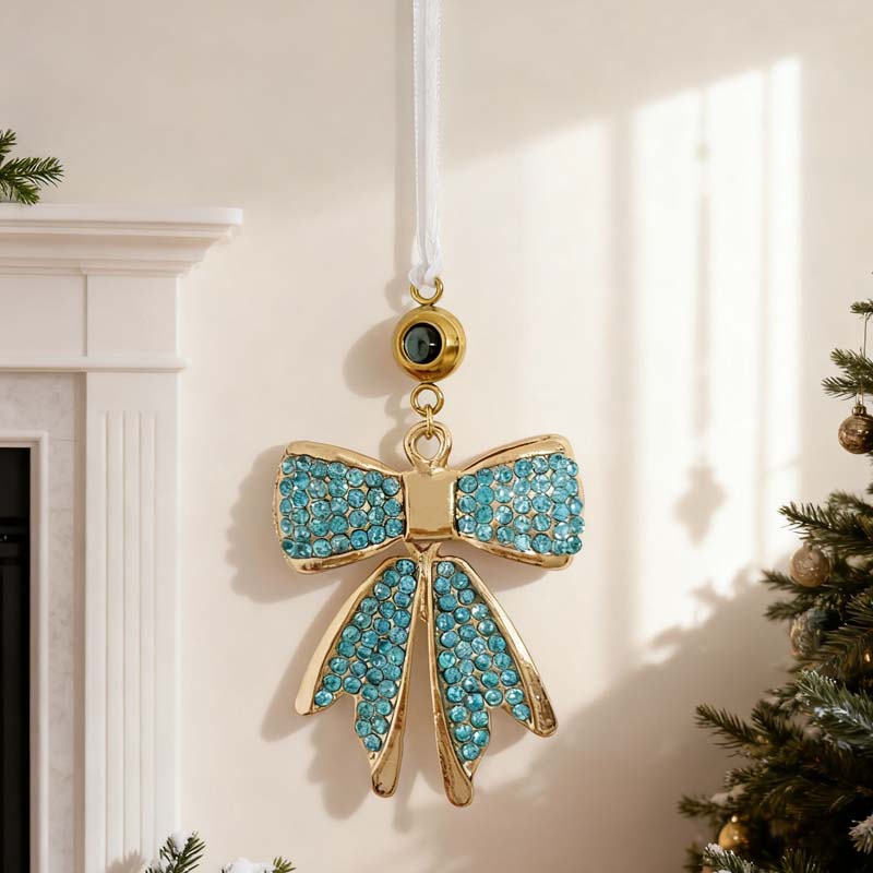 Personalized Photo Projection 3D Bow Christmas Decoration Pendant