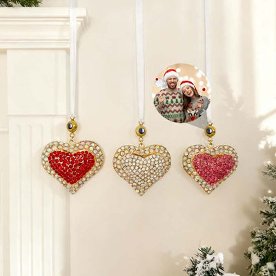 Personalized Photo Projection Diamond-Studded Heart Christmas Decoration Pendant