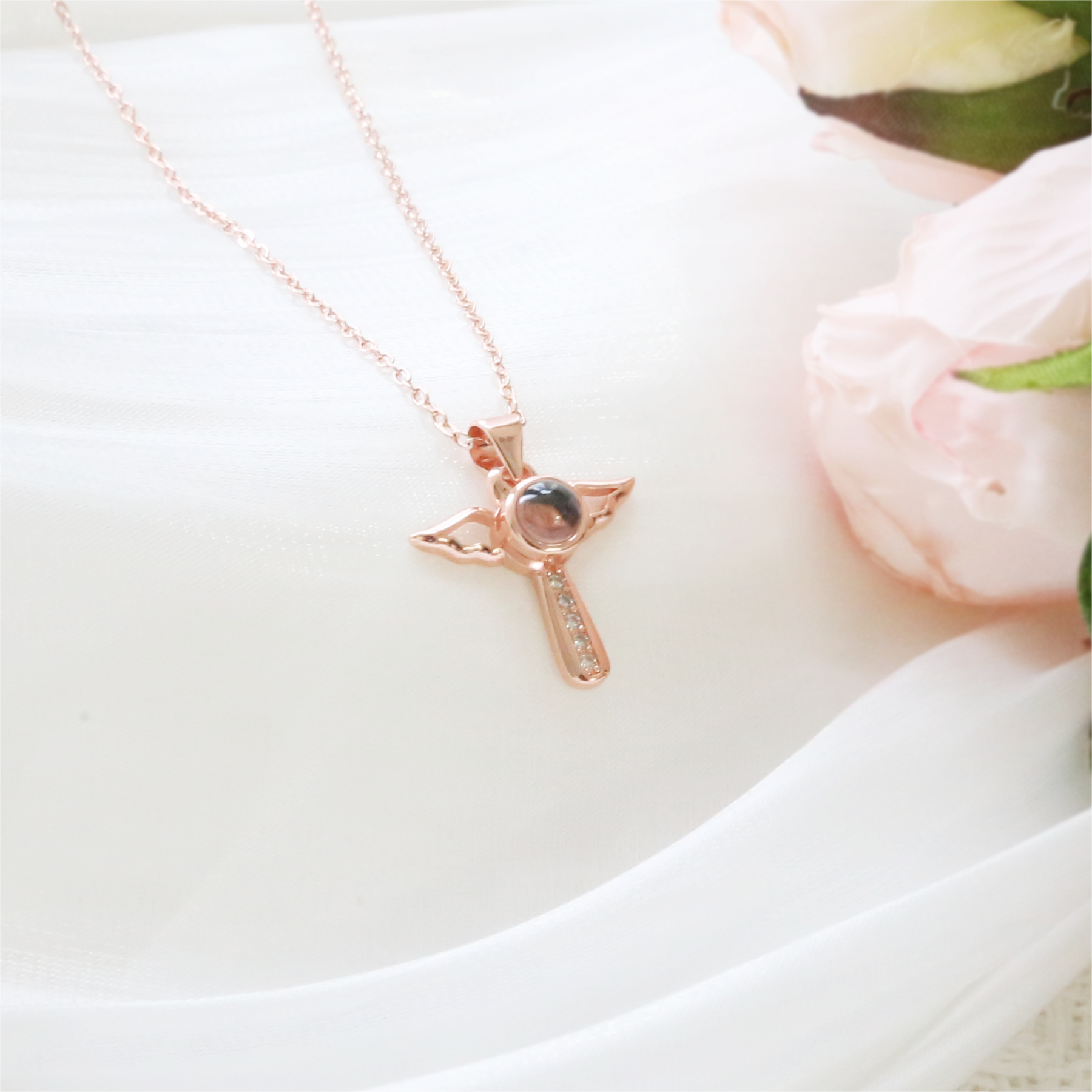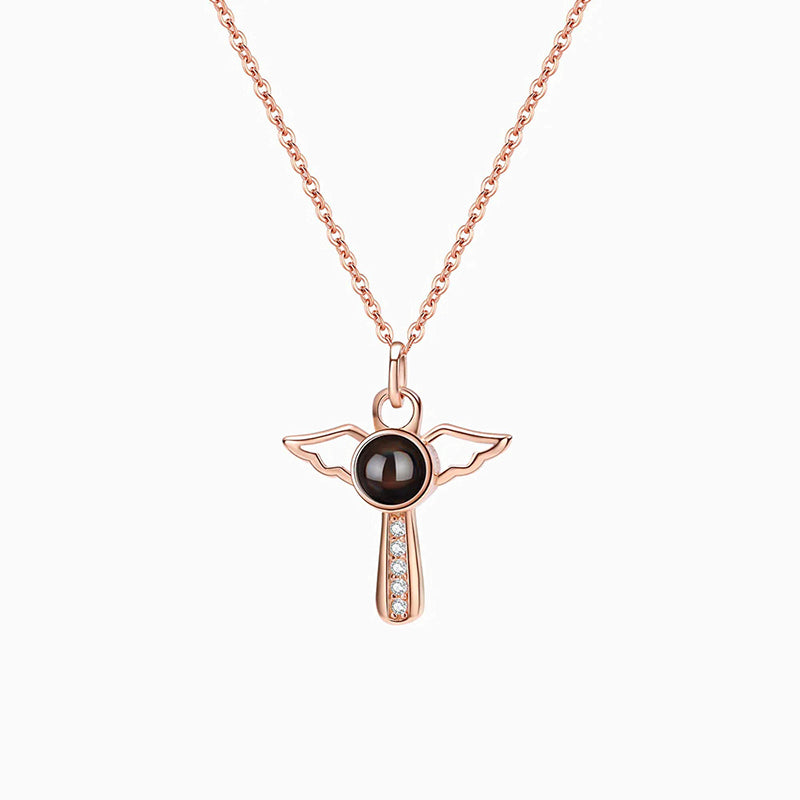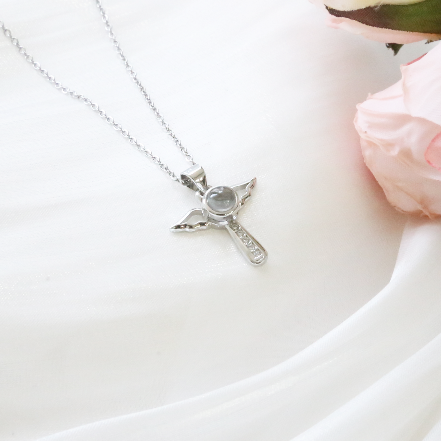 Wearmissshop Projection Photo Customed Wing Cross Necklace