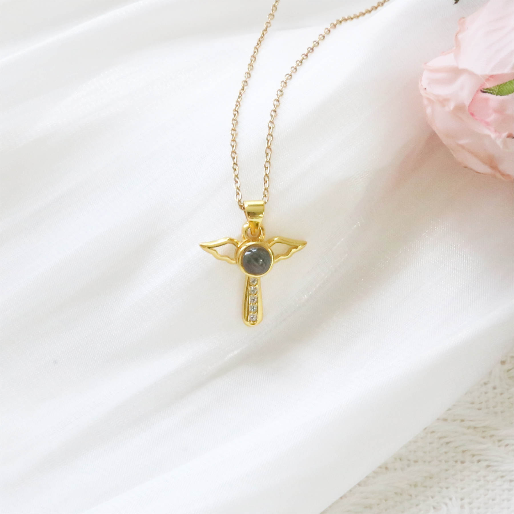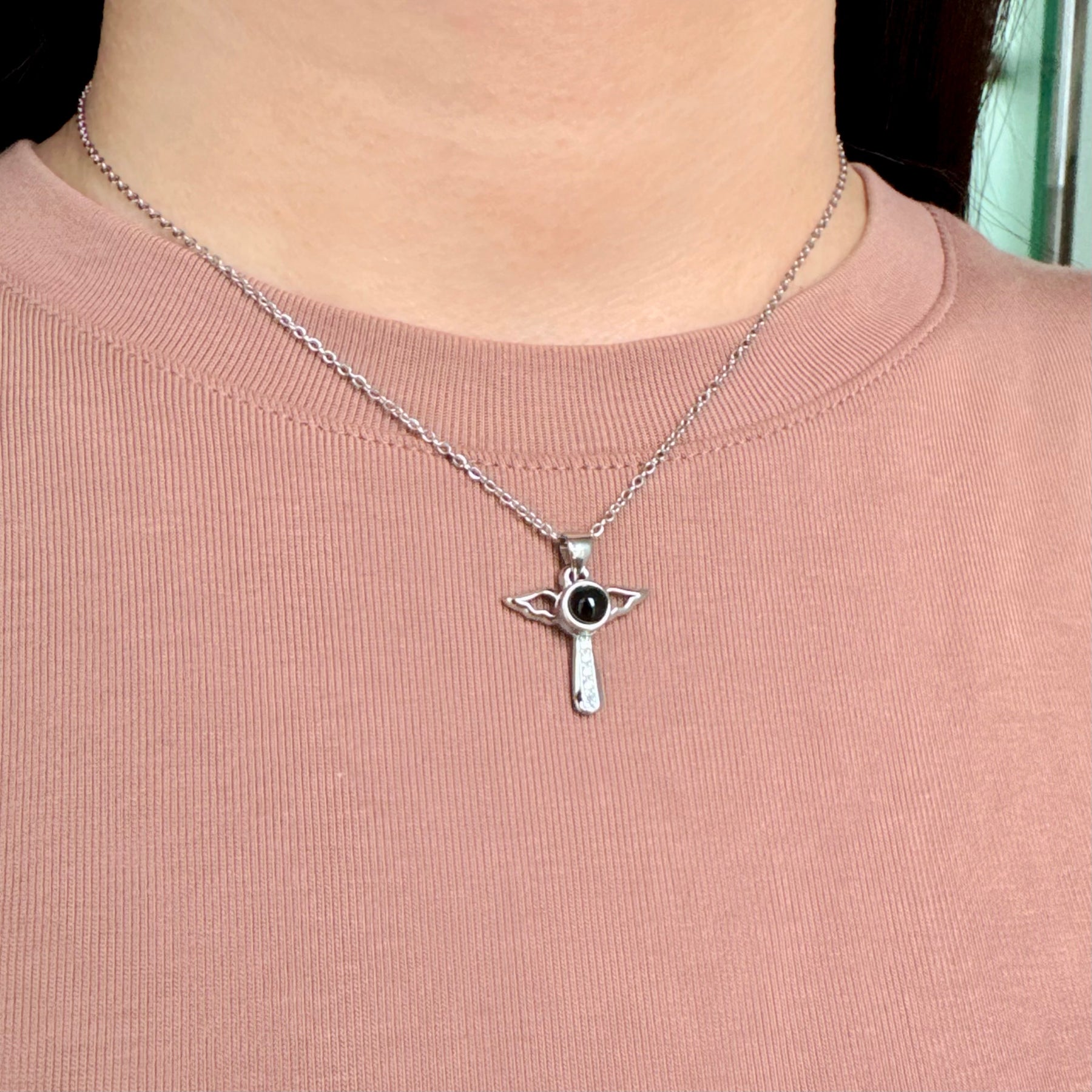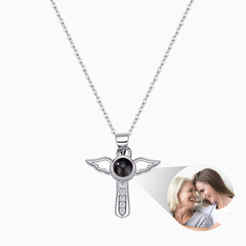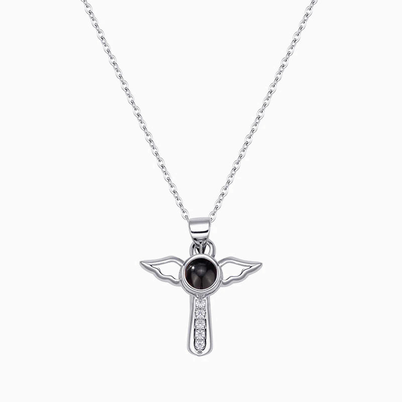 Wearmissshop Projection Photo Customed Wing Cross Necklace